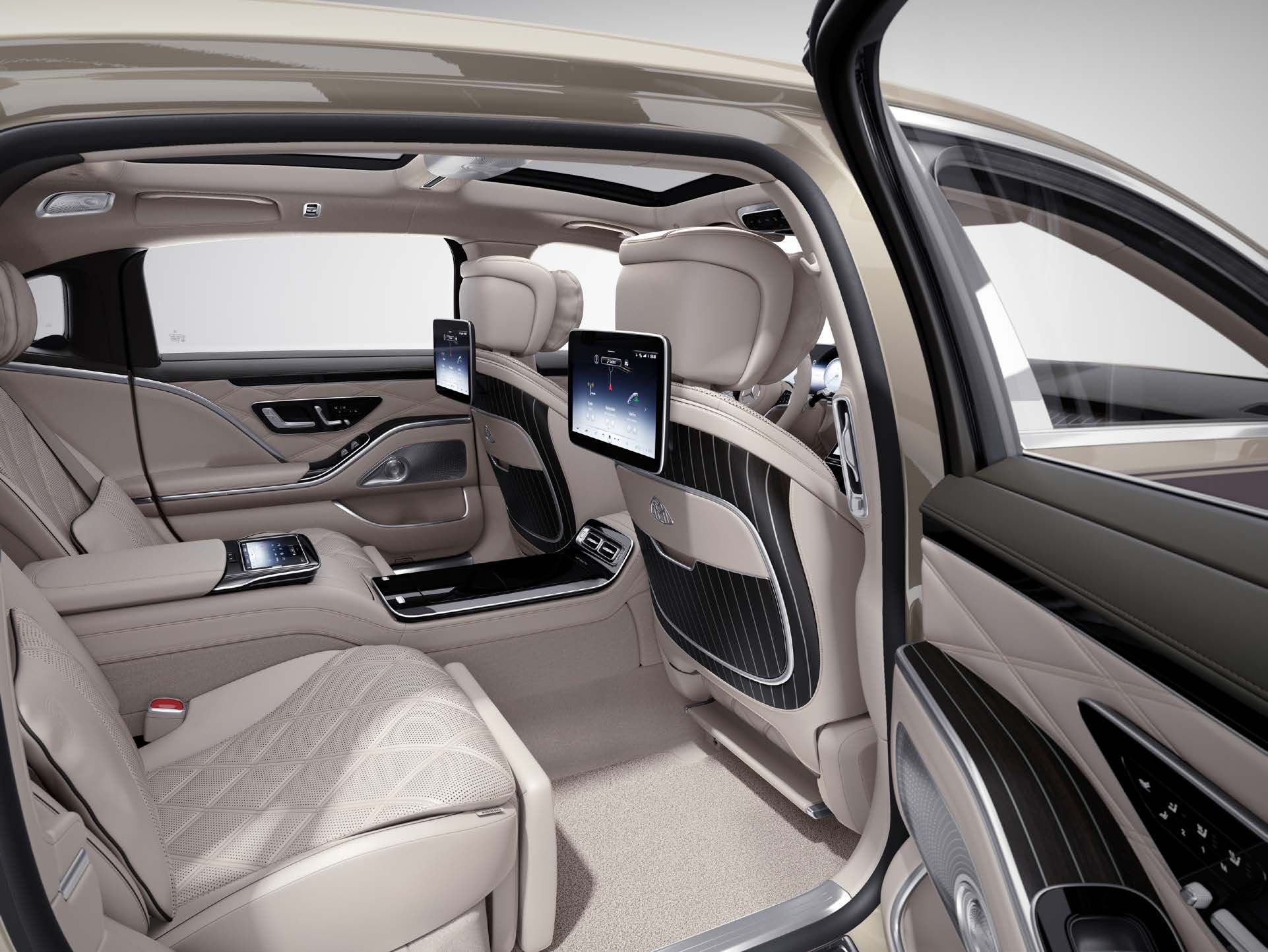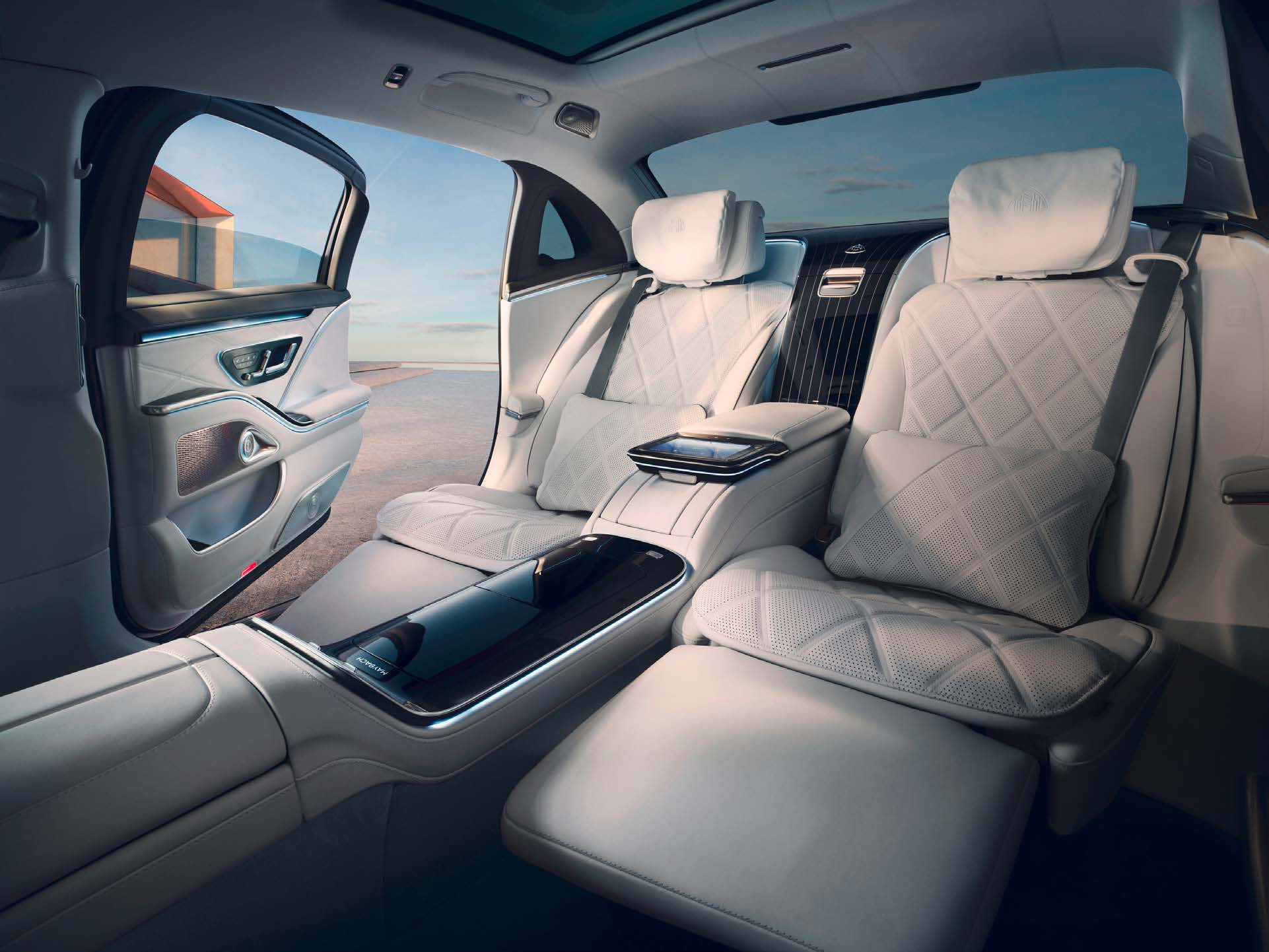 실내는 최고급 소재를 활용하여 럭셔리한 분위기를 연출합니다. 시트는 모두 가죽으로 마감되어 있으며, 여유로운 공간이 돋보입니다.