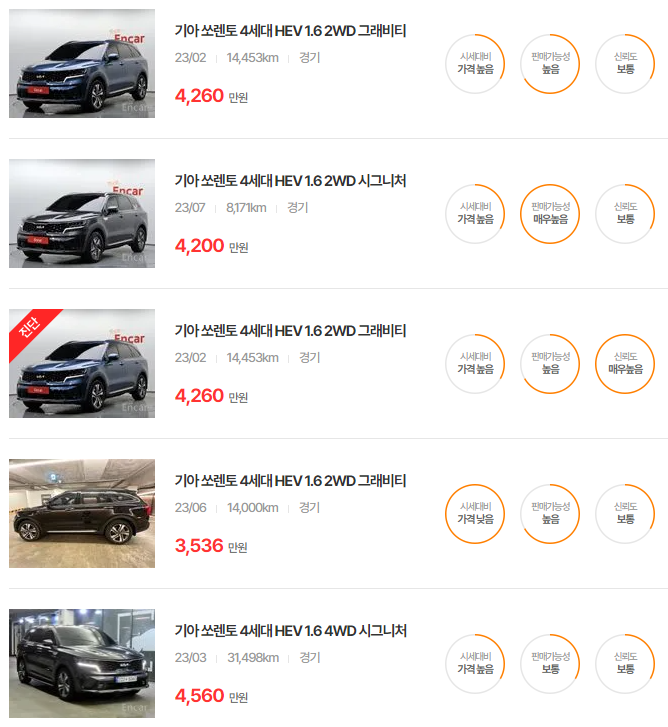 위의 링크를 통해 유사한 차량의 시세와 특징을 비교함으로써 더 현명한 중고차 구매 결정에 도움을 받으시길 바랍니다.