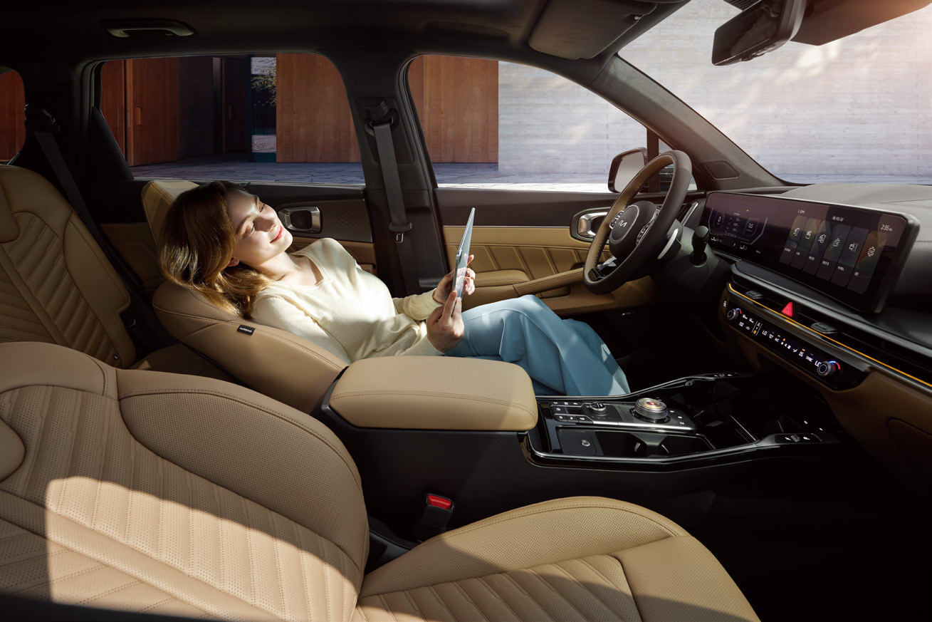 2025 쏘렌토 하이브리드는 세련된 전면 디자인과 강인한 후면 라인이 특징입니다. 단단하고 안정감 있는 모습을 강조하며, 주행 시 높은 존재감을 자랑합니다.
