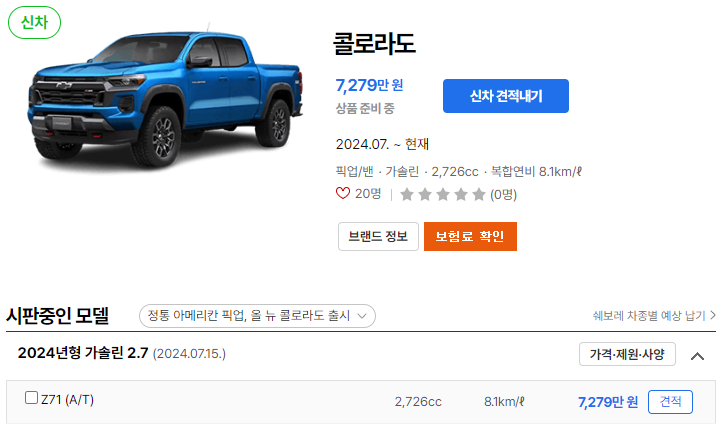 2025 콜로라도 픽업트럭 가격